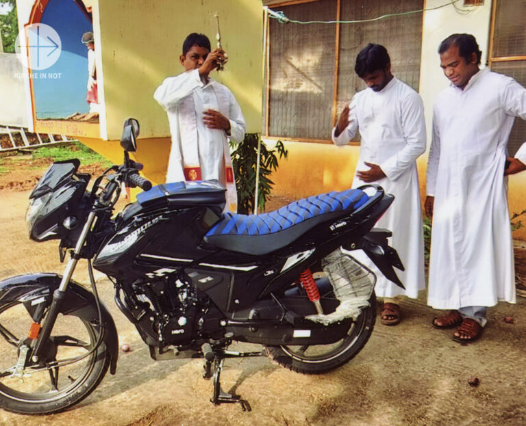 Ihr habt Kaplan Maria Raju Etcherla nicht im Stich gelassen und habt ihm mit 1.000 Euro geholfen. Er schreibt uns: „Ich bin so glücklich und dankbar. Den Betrag habe ich erhalten und habe ein Moped für meinen priesterlichen Dienst gekauft. Ich freue mich sehr und danke Euch für Eure Großzügigkeit. Ich versichere alle Wohltäter meine Gebete. Bitte betet auch Ihr weiterhin für meinen Dienst als Priester!“
